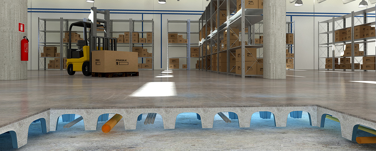 Posebno pogodan za industrijske zgrade, MULTIMODULO takođe garantuje brzu instalaciju i stvaranje tehničkog praznog prostora ili ventiliranog puzajućeg prostora. Idealan je za izgradnju velikih objekata kao što su industrije ili škole.